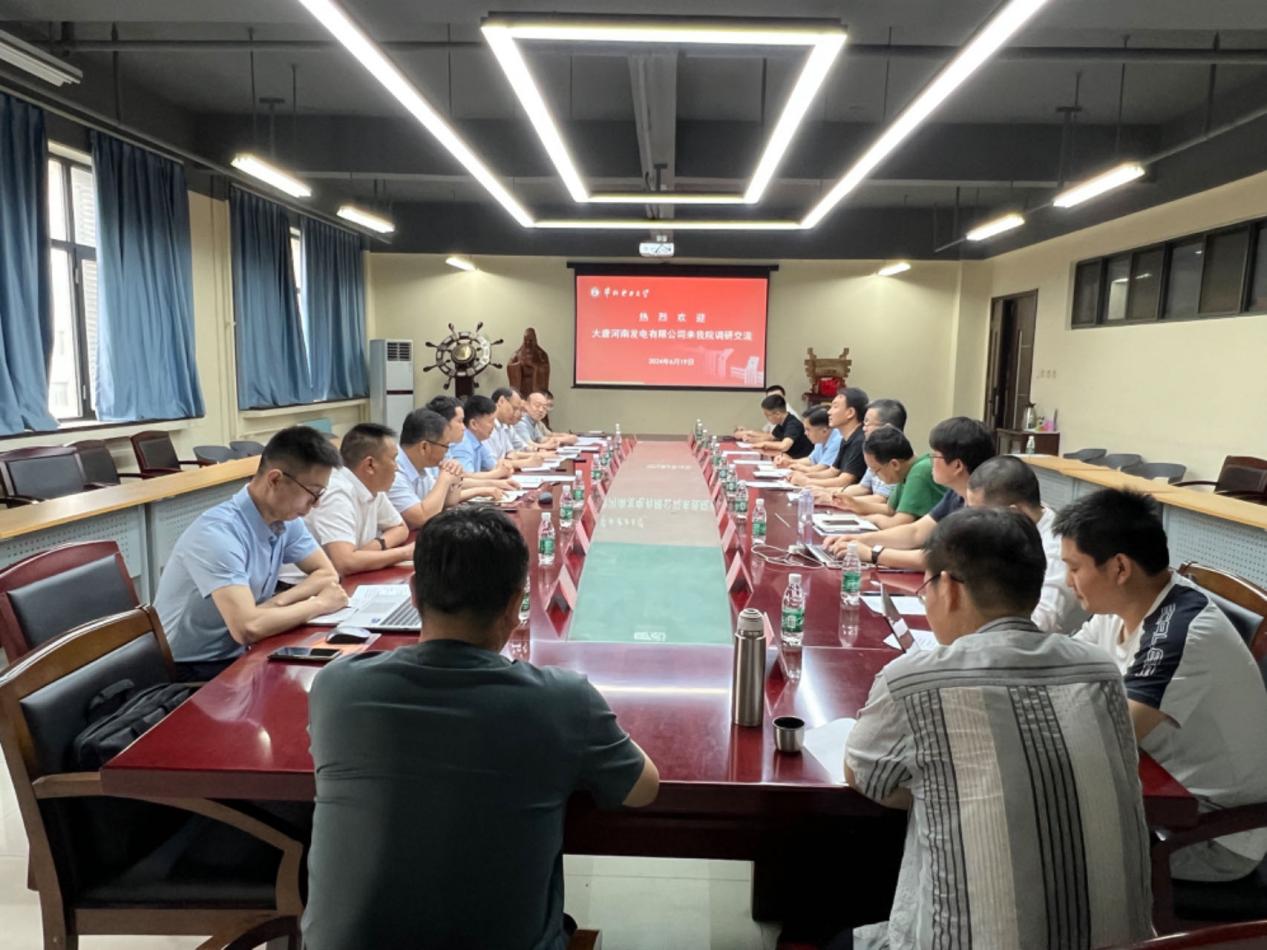 张永生对大唐河南发电有限公司到访表示欢迎,他介绍了学院的发展历史、专业设置和学科特色,并对学院在新型电力系统形势下的新技术进行了详细的介绍。他希望在科研、学科等方面与大唐河南发电有限公司进一步深入合作。李智强对本公司的简介、整体实力、主要业绩、发展规划做了全面深入的介绍,并指出近期研究计划、研究思路和今后的研究领域、重点研究方向。